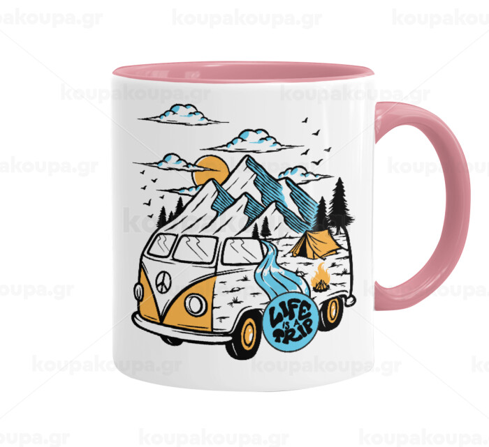 Life is a trip, Κούπα χρωματιστή ροζ, κεραμική, 330ml