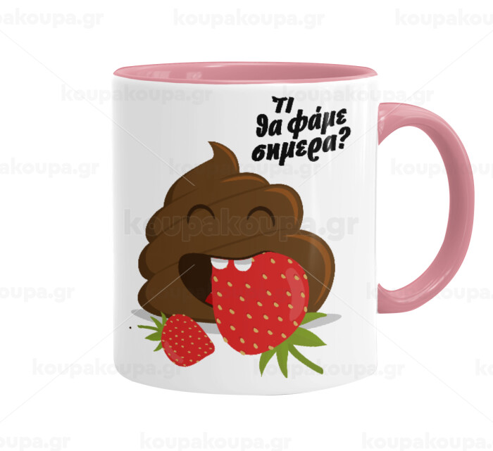 Τι θα φάμε σημερα???, Κούπα χρωματιστή ροζ, κεραμική, 330ml