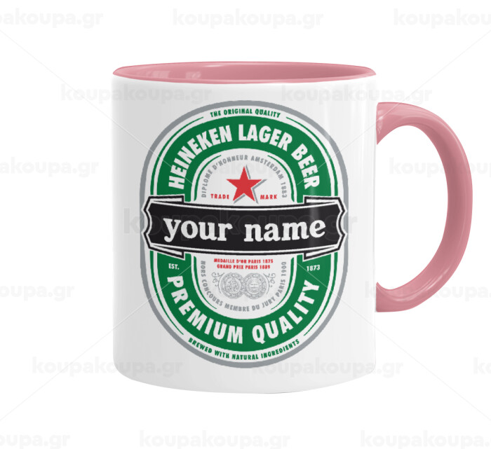 Heineken με όνομα, Κούπα χρωματιστή ροζ, κεραμική, 330ml