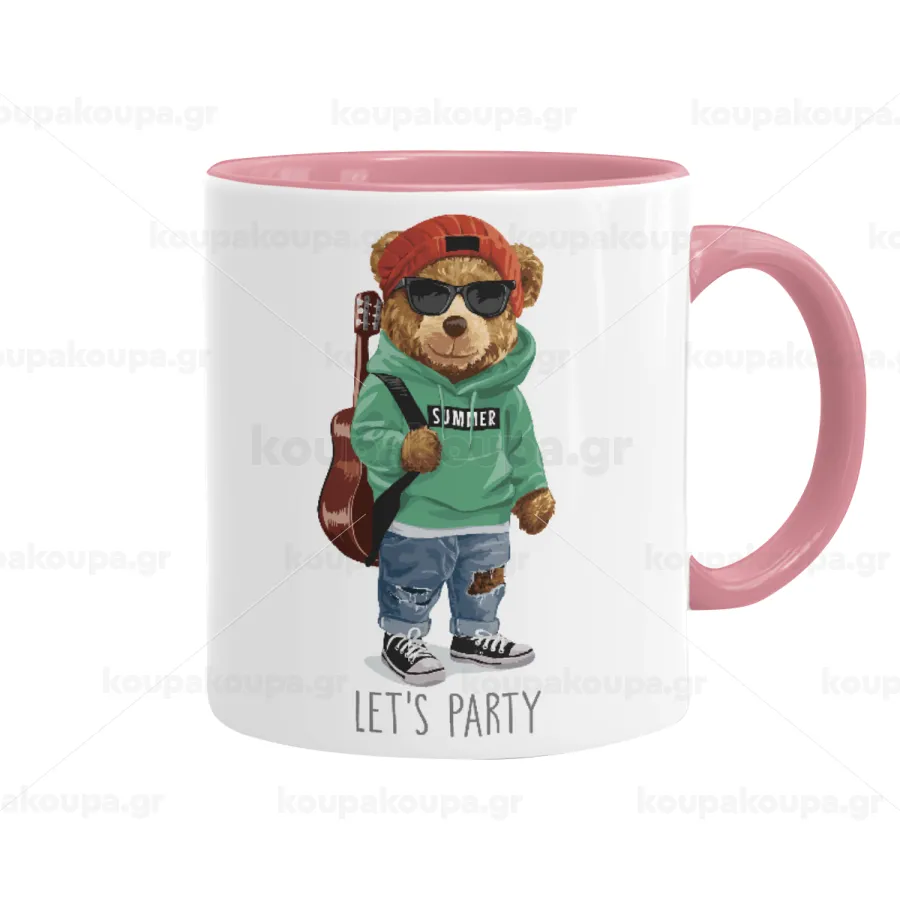 Let's Party Bear, Κούπα χρωματιστή ροζ, κεραμική, 330ml