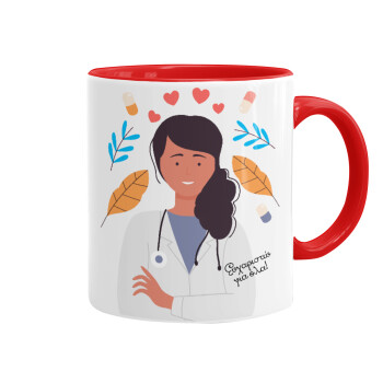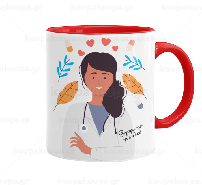 Ευχαριστώ για όλα γιατρέ, Κούπα χρωματιστή κόκκινη, κεραμική, 330ml