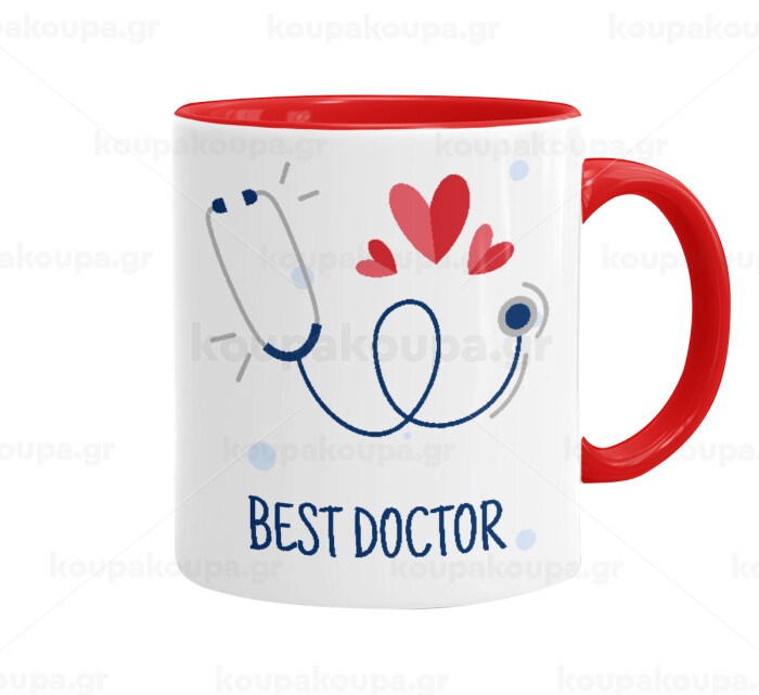 Best Doctor, Κούπα χρωματιστή κόκκινη, κεραμική, 330ml