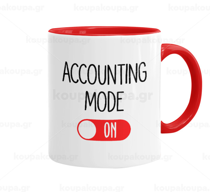 ACCOUNTANT MODE ON, Κούπα χρωματιστή κόκκινη, κεραμική, 330ml