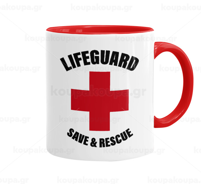 Lifeguard Save & Rescue, Κούπα χρωματιστή κόκκινη, κεραμική, 330ml
