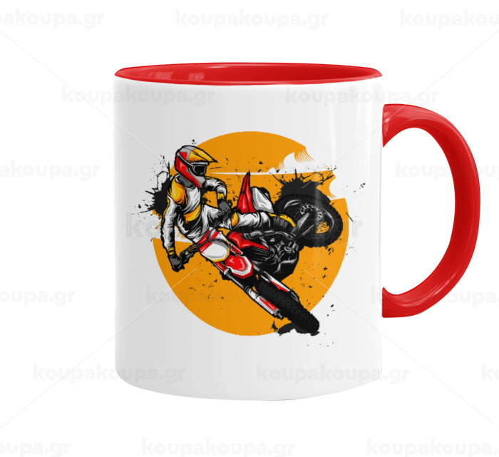 Motocross, Κούπα χρωματιστή κόκκινη, κεραμική, 330ml