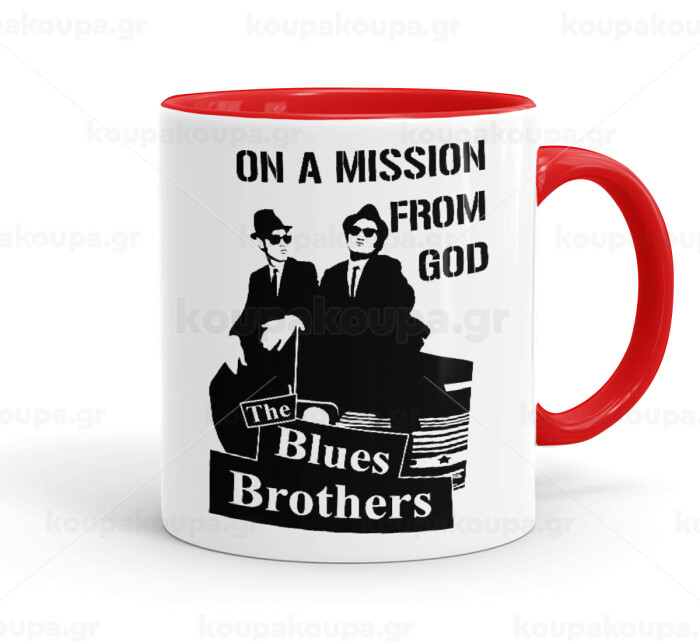 Blues brothers on a mission from God, Κούπα χρωματιστή κόκκινη, κεραμική, 330ml