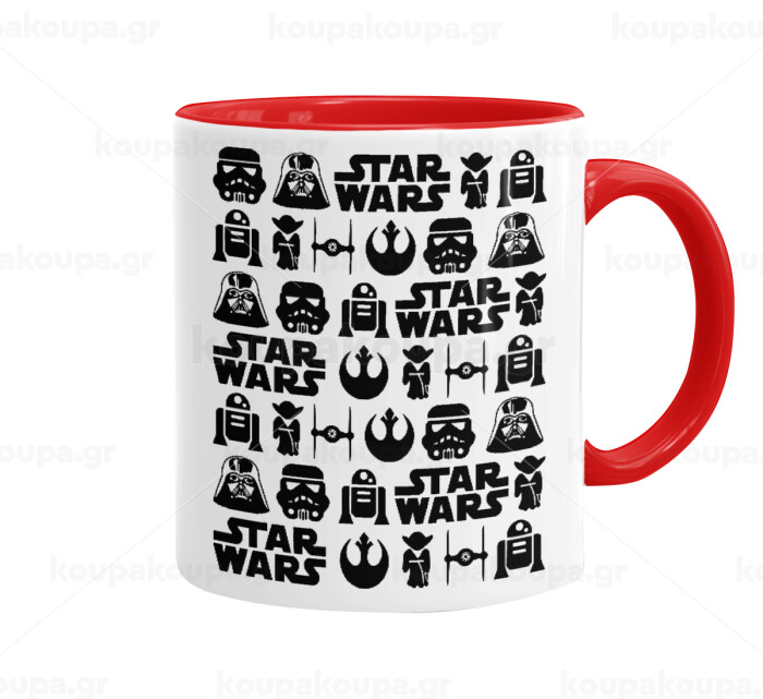 Star Wars Pattern, Κούπα χρωματιστή κόκκινη, κεραμική, 330ml