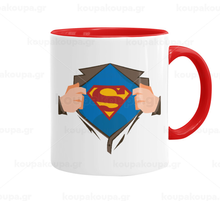 Superman hands, Κούπα χρωματιστή κόκκινη, κεραμική, 330ml