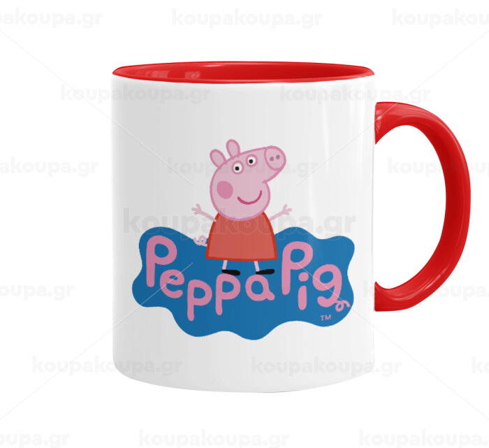 Πέππα το γουρουνάκι μπλε με όνομα, Κούπα χρωματιστή κόκκινη, κεραμική, 330ml