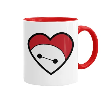 Baymax heart, Κούπα χρωματιστή κόκκινη, κεραμική, 330ml