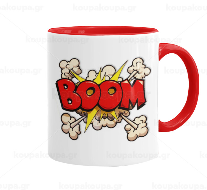 BOOM!!!, Κούπα χρωματιστή κόκκινη, κεραμική, 330ml