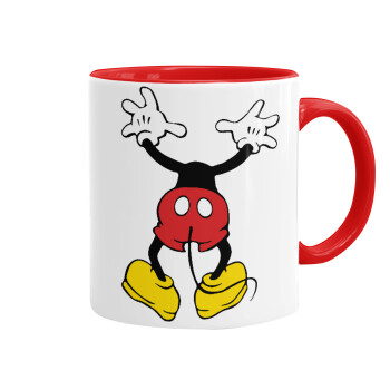 Mickey hide..., Κούπα χρωματιστή κόκκινη, κεραμική, 330ml