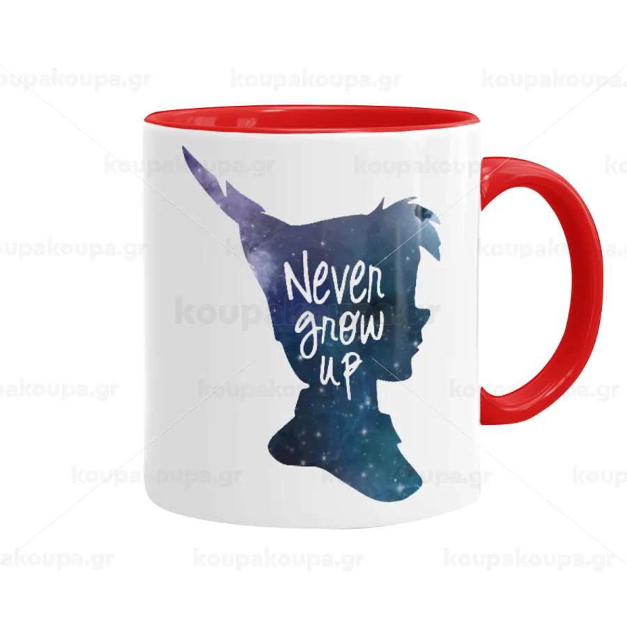 Never Grow UP, Κούπα χρωματιστή κόκκινη, κεραμική, 330ml