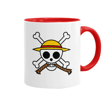 Onepiece skull, Κούπα χρωματιστή κόκκινη, κεραμική, 330ml