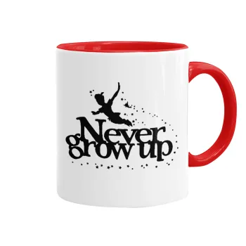 Peter pan, Never Grow UP, Κούπα χρωματιστή κόκκινη, κεραμική, 330ml