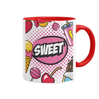 SWEET, Κούπα χρωματιστή κόκκινη, κεραμική, 330ml