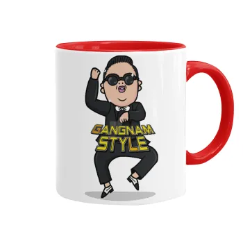 PSY - GANGNAM STYLE, Κούπα χρωματιστή κόκκινη, κεραμική, 330ml