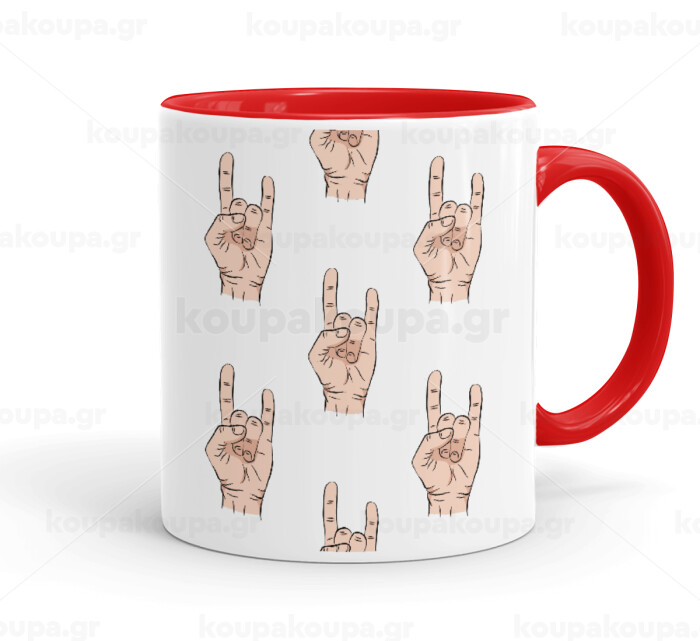 Rock hands, Κούπα χρωματιστή κόκκινη, κεραμική, 330ml