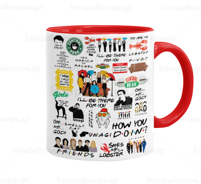 Friends, Κούπα χρωματιστή κόκκινη, κεραμική, 330ml