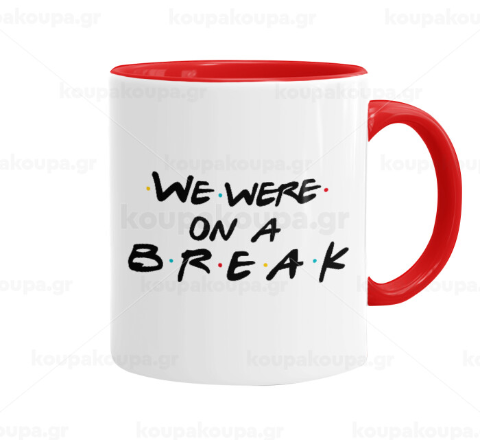 Friends we were on a break, Κούπα χρωματιστή κόκκινη, κεραμική, 330ml