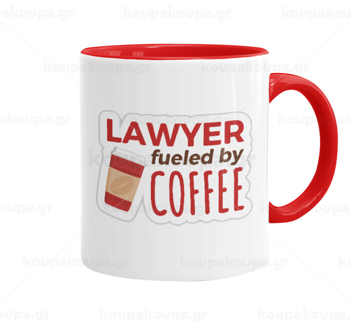 Lawyer fueled by coffee, Κούπα χρωματιστή κόκκινη, κεραμική, 330ml