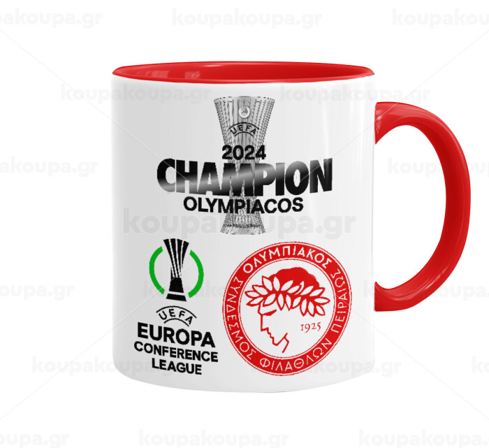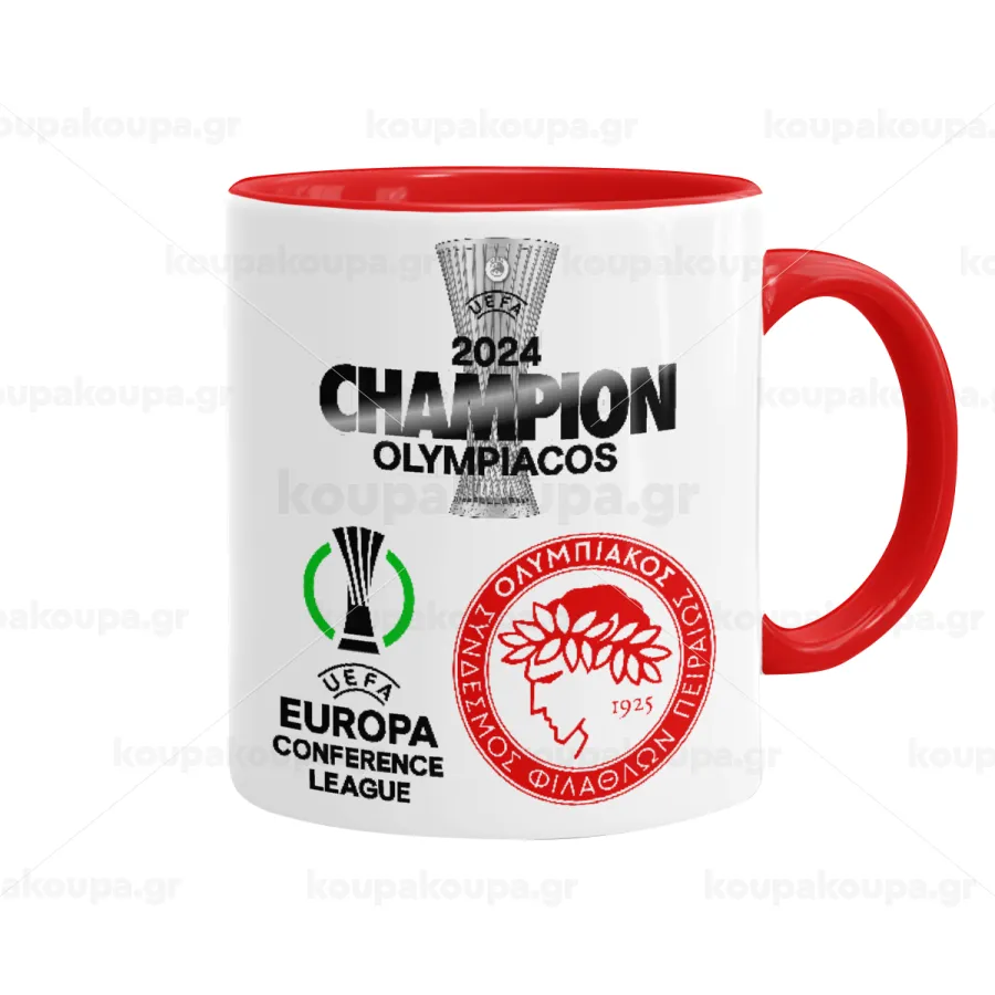 Olympiacos UEFA Europa Conference League Champion 2024, Κούπα χρωματιστή κόκκινη, κεραμική, 330ml