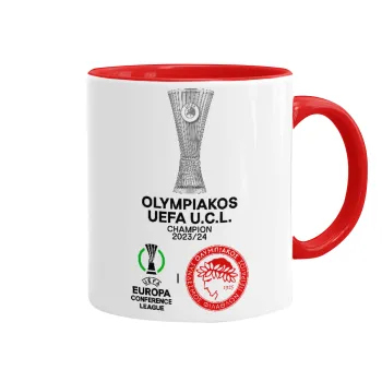 Ολυμπιακός νικητής UEFA Europa Conference League Champion 2023/24, Κούπα χρωματιστή κόκκινη, κεραμική, 330ml