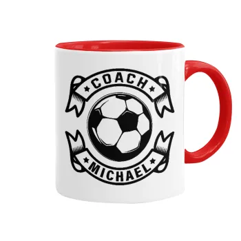 Soccer coach, Κούπα χρωματιστή κόκκινη, κεραμική, 330ml