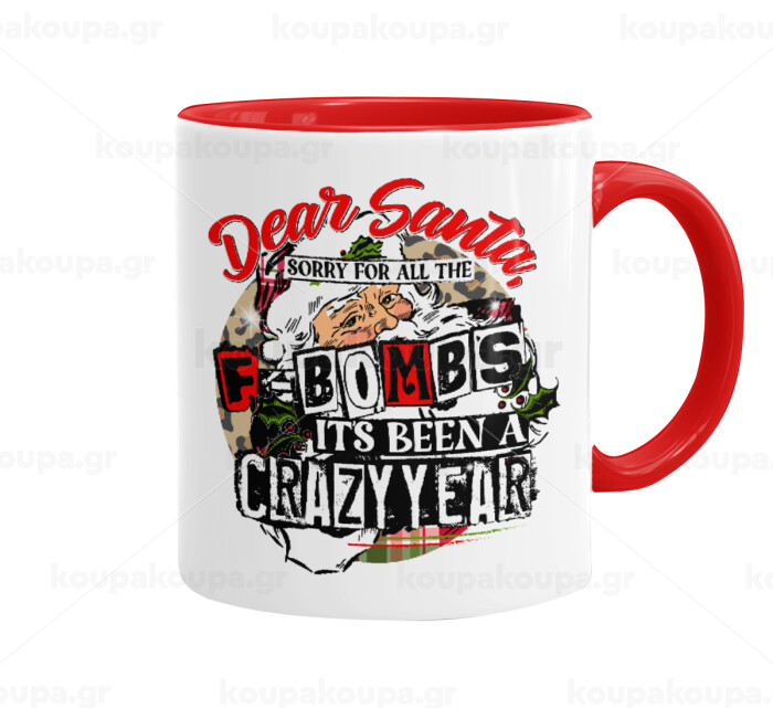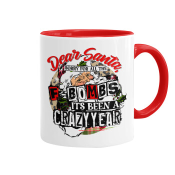 Dear Santa, sorry for all the F-bombs, Κούπα χρωματιστή κόκκινη, κεραμική, 330ml