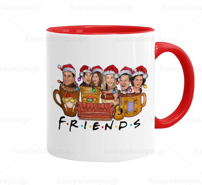 FRIENDS xmas, Κούπα χρωματιστή κόκκινη, κεραμική, 330ml
