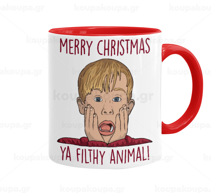 home alone, Merry Christmas ya filthy animal, Κούπα χρωματιστή κόκκινη, κεραμική, 330ml