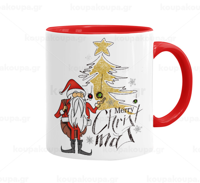 Santa Claus gold, Κούπα χρωματιστή κόκκινη, κεραμική, 330ml