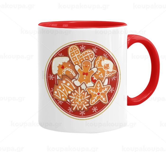 xmas cookies, Κούπα χρωματιστή κόκκινη, κεραμική, 330ml