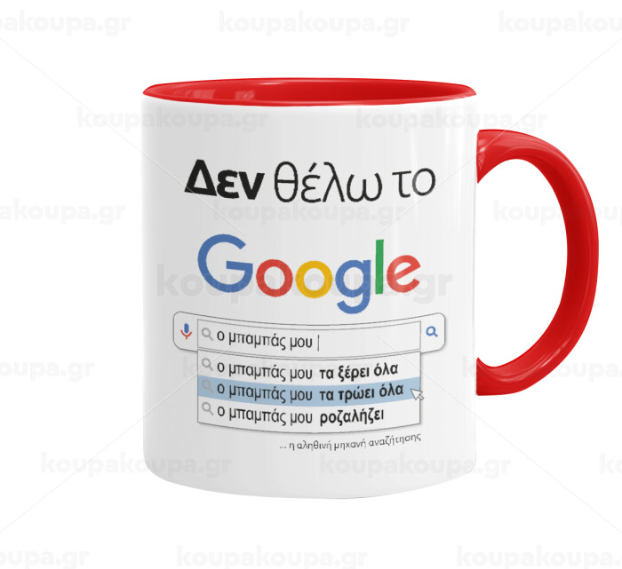 Δεν θέλω το Google, ο μπαμπάς μου..., Κούπα χρωματιστή κόκκινη, κεραμική, 330ml
