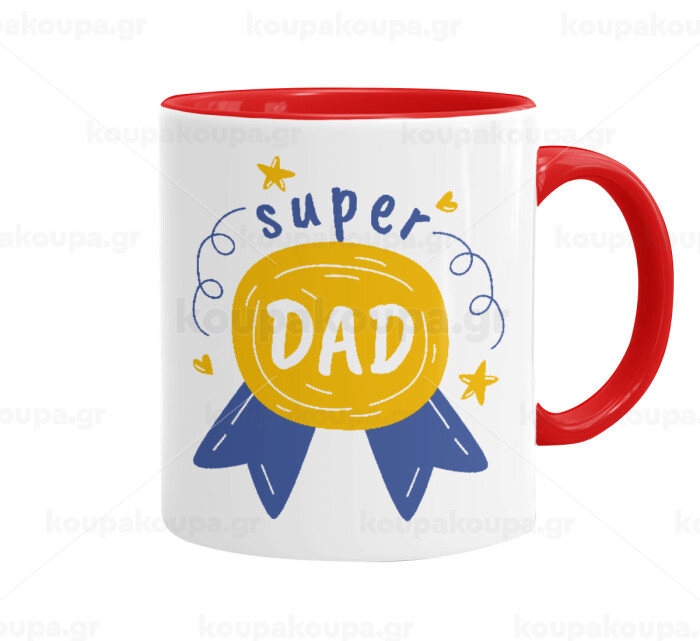 Μπαμπά είσαι για μετάλλιο, Κούπα χρωματιστή κόκκινη, κεραμική, 330ml