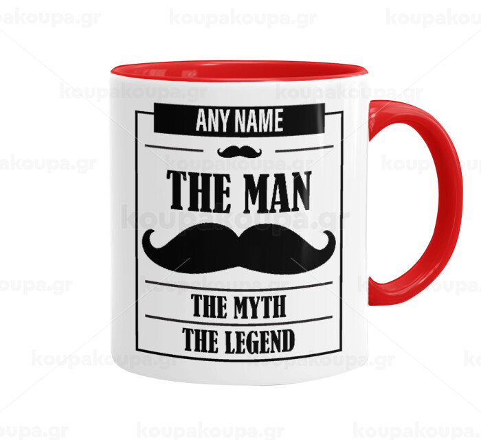 The man, the myth, Κούπα χρωματιστή κόκκινη, κεραμική, 330ml