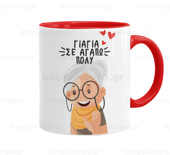 Γιαγιά σε αγαπώ πολύ!, Κούπα χρωματιστή κόκκινη, κεραμική, 330ml