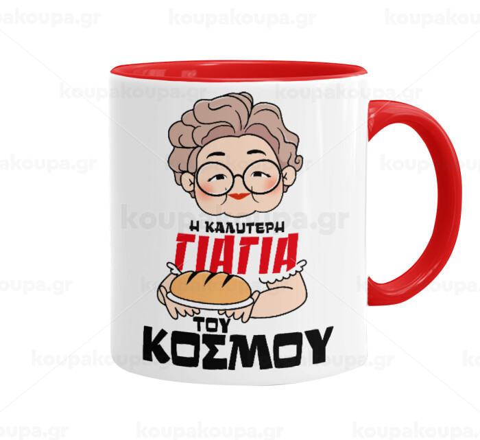 Η καλύτερη γιαγιά του κόσμου!, Κούπα χρωματιστή κόκκινη, κεραμική, 330ml