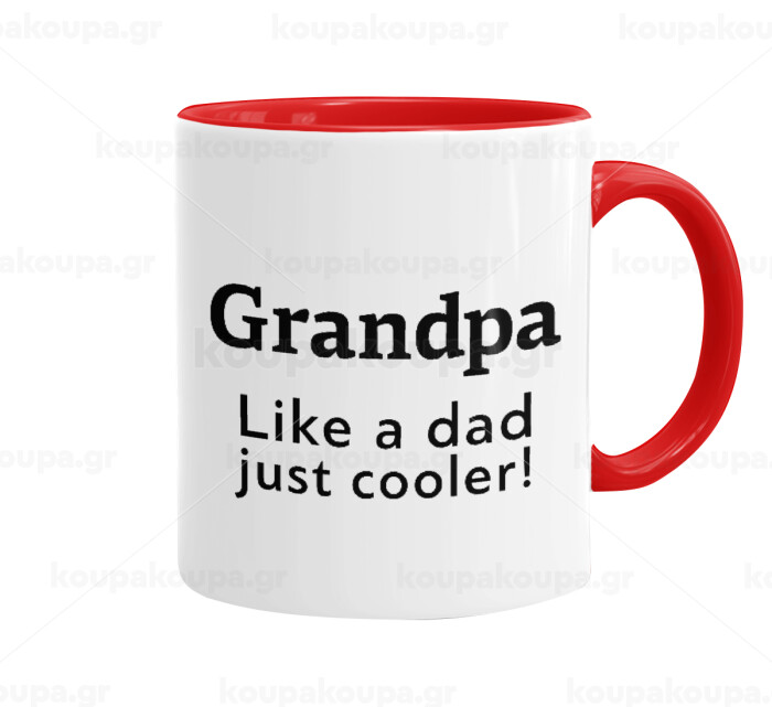 Grandpa, like a dad, just cooler, Κούπα χρωματιστή κόκκινη, κεραμική, 330ml