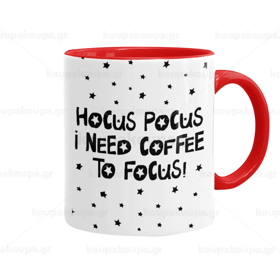 Hocus pocus i need coffee to focus - halloween, Κούπα χρωματιστή κόκκινη, κεραμική, 330ml