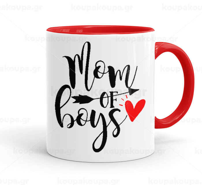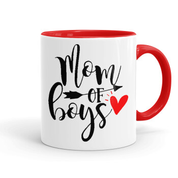Mom of boys, Κούπα χρωματιστή κόκκινη, κεραμική, 330ml