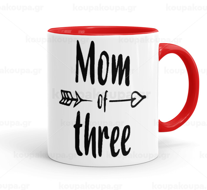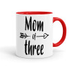 Mom of three, Κούπα χρωματιστή κόκκινη, κεραμική, 330ml