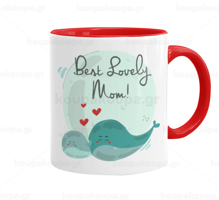 Mothers Day, whales, Κούπα χρωματιστή κόκκινη, κεραμική, 330ml