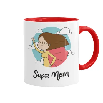 Super mom, Κούπα χρωματιστή κόκκινη, κεραμική, 330ml