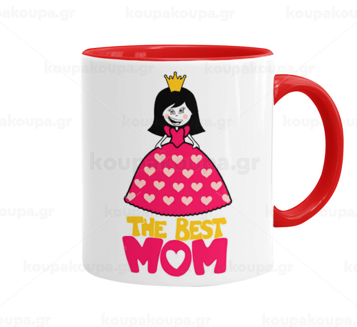 The Best Mom Queen, Κούπα χρωματιστή κόκκινη, κεραμική, 330ml