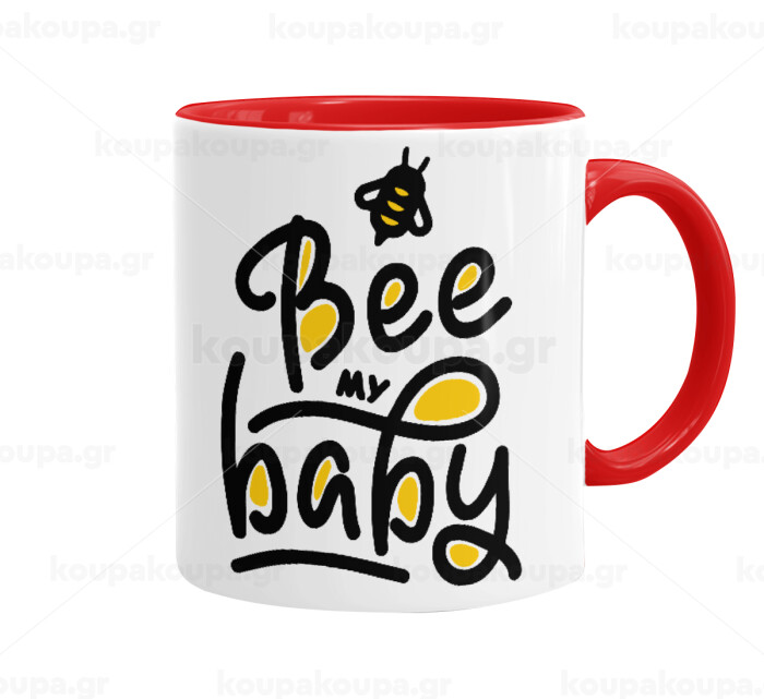 Bee my BABY!!!, Κούπα χρωματιστή κόκκινη, κεραμική, 330ml