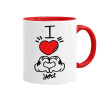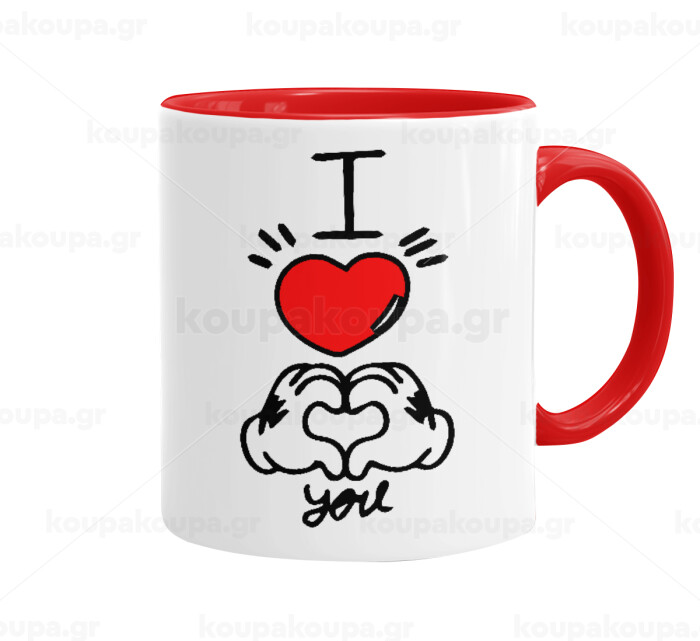 comics hands love, Κούπα χρωματιστή κόκκινη, κεραμική, 330ml