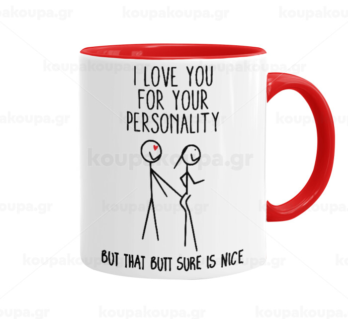 I Love you for your personality, Κούπα χρωματιστή κόκκινη, κεραμική, 330ml