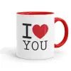 I Love you classic, Κούπα χρωματιστή κόκκινη, κεραμική, 330ml