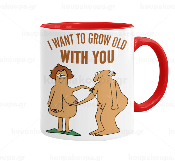I want to grow old with you, Κούπα χρωματιστή κόκκινη, κεραμική, 330ml